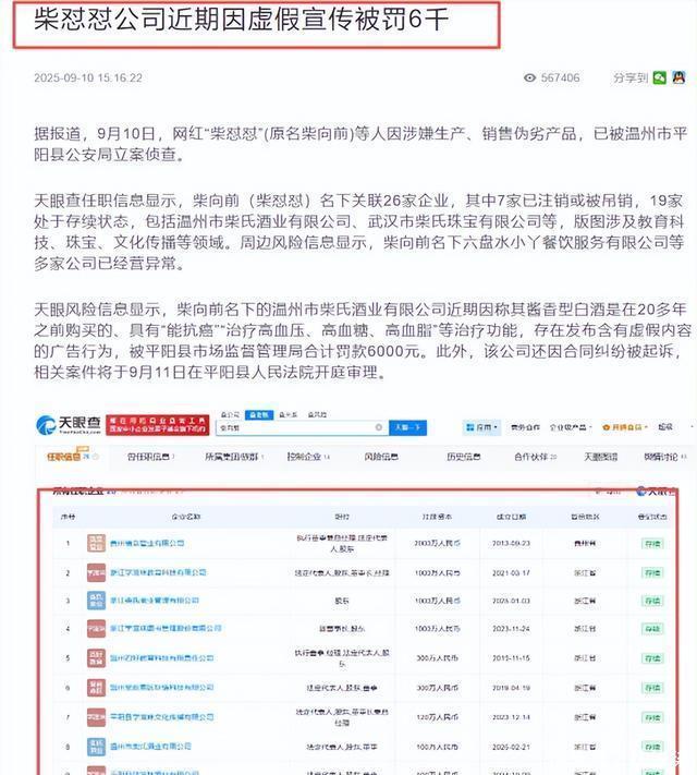 还有一个花了9.4万元的何女士,到现在还有5375元没要回来,最让何女士来气的是,“柴怼怼”的老婆肖某,之前还在直播间里公开说“有钱也不退”。 这种态度简直是把“我们就是骗你”写在了脸上,后来大家一查才发现,这对夫妻生意做得很大,柴向前名下有25家公司,肖某名下也有15家。