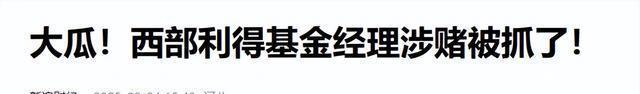 新浪财经,2025-09-24,“大瓜!西部利得基金经理涉赌被抓了!”